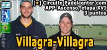 (Buenos Aires, 27/7/2008. De la Redacción de Padelcenter.com) Todo a tres sets, parejita como respiración de yogui, la etapa XVI del Circuito Padelcenter.com APP-A dejó tres grandes partidos en la tarde y noche del domingo con semifinales y final apretadísimas y un frío intenso sobre Buenos Aires. En un torneo que repartió 3 puntos para el Ranking APP oficial, los campeones llegaron desde Florencio Varela, al sur de Buenos Aires. Leonardo y Rodrigo Villagra vencieron a Facundo "Pollo" Monteverdi (uno de los coleccionistas de copas del APP-A) y Ezequiel "Hueso" Martin por 7/5 3/6 7/5.