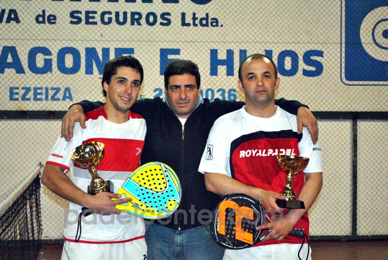 (Buenos Aires, 5/9/2011. Redacción de Padelcenter.com) Mariano Fischer y Andrés Britos sacan chapa de pareja 1 y definen la final en Ezeiza ante los locales di Nenno-Estrella por 6/3 1/0 y abandono, obteniendo 60 puntos para el Ranking APP. En comunicación telefónica con Padelcenter.com, Mariano Fischer explicaba su triunfo, sin ocultar su satisfacción, y no sin antes "retar" a Padelcenter.com ("al fin, viejo, siempre le hacés notas a los que me ganan a mí")..."Creo que Martin y Elías tuvieron mayor desgaste físico en cuartos el sábado a la noche en el tremendo partido que hicieron contra Zugarrondo-Cuzzilla en cuartos, y en la semi tuvieron la chance de ganar en dos, pero se les escapa el segundo y tuvieron media hora más de trabajo, cosa que creo que les quitó resto físico y por eso Martin terminó abandonando en la final acalambrado. Con Andrés entramos muy motivados, sabiendo que jugábamos contra una pareja muy buena, que además de jugar siempre bien era local y tenía toda la hinchada a favor, eso influyó para que juguemos más concentrados todavía e hicimos las cosas bien en lo táctico. La verdad es que estamos muy contentos por el campeonato, sobre todo porque casi abandonamos en cuartos, se nos complicó por un tema de salud de Andres que en octavos ya estaba descoumpuesto y llegó a cuartos en muy malas condiciones. Cuando estábamos 5/6 0/40 contra Recchiuti-Pelassini pensé que abandonábamos y le pregunté a Andrés si podía seguir, pero él me dijo "dame dos minutos que la luchamos", así que planteamos que juegue paralelo, para que me llegue juego a mí y yo me la juegue, funcionó y zafamos. El domingo se cuidó, se recuperó y pudo volver a su nivel para semi y final".