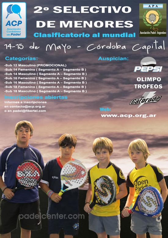(Córdoba, 16/5/2011. Matías Mercado, ACP, para Padelcenter.com) Este fin de semana del 14-15 de mayo, por primera vez en la historia de nuestra ciudad capital, se realizo un selectivo de menores, que clasificará al mundial de la especialidad. El torneo estuvo organizado por la Asociación Cordobesa de Padel y la Asociación Padel Argentina.