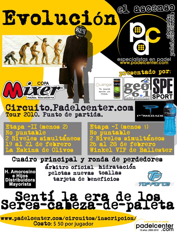 Punto de partida para el Tour 2010 de los Circuitos.Padelcenter.com. Inscribite on line. Estamos trabajando para mejorar la experiencia de torneo del jugador de pádel. Te esperamos.