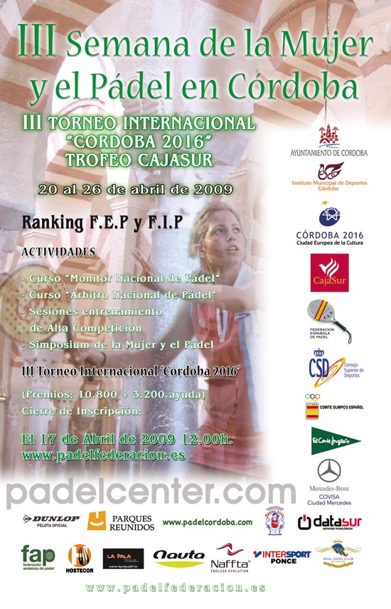 (España, 26 de abril de 2009. Gabinete de Prensa del Torneo para Padelcenter.com) UNA GRAN FINAL PONE LA GUINDA A UNA EXCELENTE SEMANA La III Semana de la Mujer y el Pádel finalizó en las instalaciones del Real Aero Club de Córdoba con