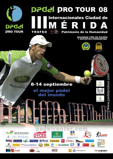 (Buenos Aires y España, 11 de septiembre de 2008. De la Redacción de Padelcenter.com) SEGÚN LO PREVISTO. Los mejores jugadores de pádel del mundo saltan a las pistas del Tiro Pichón de Mérida. Los aficionados emeritenses habían esperado un año para volver a disfrutar con el juego de las mejores raquetas del circuito de pádel, y el ansiado momento llegó esta tarde en las pistas de la Sociedad de Tiro Pichón y Deportes “Proserpina” que han acogido los partidos de dieciseisavos de final del III Torneo Internacional de Pádel Pro Tour Ciudad de Mérida.