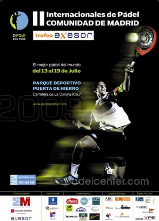 La celebración de los II Internacionales de Pádel Comunidad de Madrid Trofeo Axesor en las instalaciones del Parque Deportivo Puerta de Hierro del 13 al 19 de julio traslada la máxima competición de pádel profesional a la capital. Año tras año miles de madrileños son testigos directos de la prestigiosa cita madrileña. Se trata de un campeonato que en 2008 colgó el cartel de completo durante la disputa de la final, y que en su segunda edición espera superarse y rebasar el éxito de público cosechado en anteriores ediciones.
