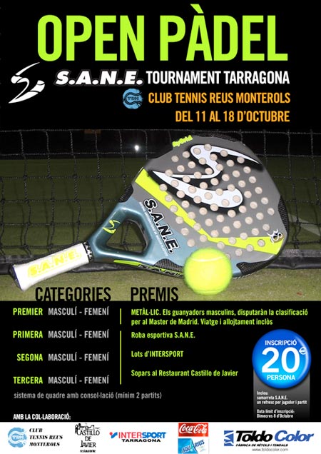 (Buenos Aires y Madrid, 1º de noviembre de 2008. S.AN.E. Tournament y Redacción de Padelcenter.com) Este Domingo ha finalizado el torneo de padel copa'El Castillo de Javier' perteneciente al circuito nacional 'Sane Tournament', jugado en el Tennis Reus Monterols y organizado por Gonzalo Montiel.