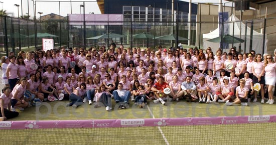 (Valencia, 6 de abril de 2009. Rubén López Morán para Padelcenter.com) Mujeres unidas por un lazo rosa. El III Torneo Benéfico de Pádel Femenino en favor de la AECC reúne a 80 parejas. Es el distintivo de la campaña “Mucho por vivir” que lleva a cabo la Asociación Española Contra el Cáncer (AECC). Es el lazo rosa. Un símbolo que une a las mujeres en una lucha que les es propia, porque la combaten a pecho descubierto, en primera persona. No en vano, el cáncer de mama es la enfermedad de mayor incidencia entre el sector femenino.
