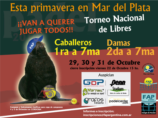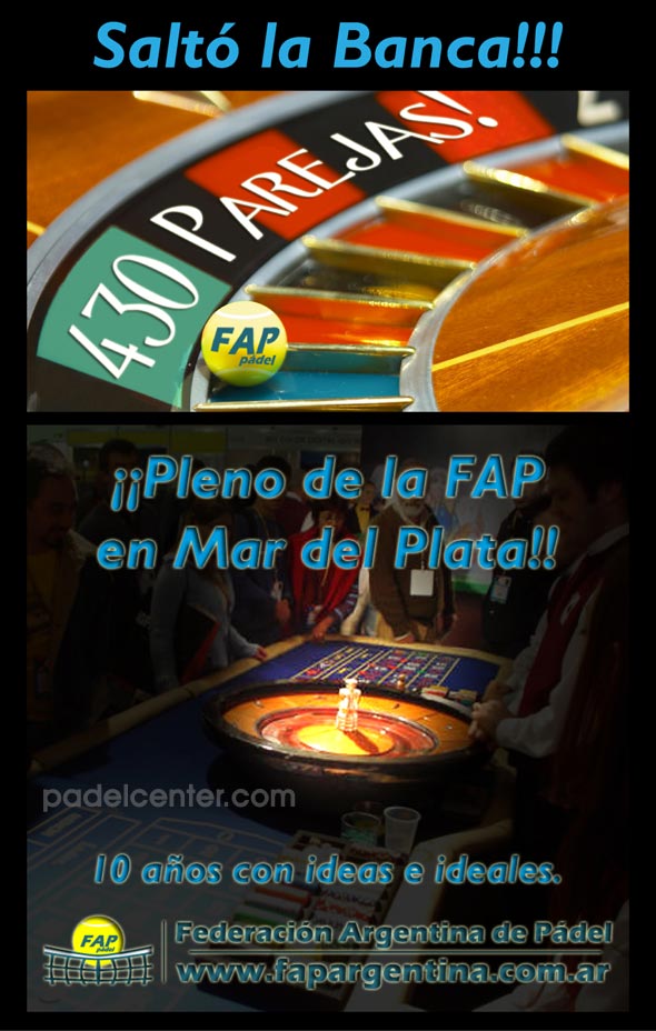 (Buenos Aires, 3/11/2010. FAP para Padelcenter.com) Los días 29, 30 y 31 de octubre se desarrolló en la Ciudad de Mar del Plata el Nacional de categorías libres de la Federación Argentina de Padel ( F.A.P.) con una participación de 866 jugadores