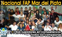 (Buenos Aires, 3/11/2010. FAP para Padelcenter.com) Los días 29, 30 y 31 de octubre se desarrolló en la Ciudad de Mar del Plata el Nacional de categorías libres de la Federación Argentina de Padel ( F.A.P.) con una participación de 866 jugadores