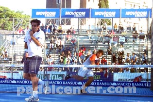 Buenos Aires, jueves 18/11. por Uri Leczycki/Guillermo Russell, de la Redacción de Padelcenter.com • Casi se da otra sorpresa en el ProsPódromo en la noche del jueves, cuando los número uno de la Argentina durante 2004, Gerardo Derito y Federico Pérez Millán comenzaron sacándole el primer set a los favoritos Gabriel Reca y Sebastián Nerone, en el partido que marcó un pico de público y también de jerarquía de juego. En el primer game el Cutu y el Fierro salieron decididos a romper con la lógica del partido y quebraron en el primer game. Fue un duelo de drive muy prolijo de ambos lados, mientras los jugadores de revés se "mataban" en otro duelo de potencia y velocidad. Pero luego de la caída en el primer set, Reca/Nerone comenzaron un trabajo de demolición jugando estratégicamente perfecto, para llevarse los dos sets siguientes por 6/2 6/2. Pérez Millán jugó un partido increíble y no pudo ocultar su frustración cuando sus rivales consiguieron el éxito en el planteo, poniéndose rápidamente 5/1. Gaby Reca mostró el nivel que todos le conocemos, pero con gran madurez y claridad para mover a sus rivales y elegir el golpe justo en el momento indicado. Seba Nerone fue puro despliegue para llegar a pelotas increibles, mientras Pérez Millán aceleraba cada vez más la bola intentando revertir la situación. Derito, como siempre una máquina, aunque se lo vio un tanto bajo de ánimo cuando en el tercer set el partido se le iba de las manos. Despedida para una gran pareja como Derito/Pérez Milán, que se va en octavos mostrando que puede jugar contra cualquier pareja del circuito, y así como perdió en tres sets en el Mundial frente a Reca/Nerone y en Bilbao en tres también frente a Díaz/Belasteguin, sabe que está a un paso del mejor nivel del mundo, en el pelotón que viene pegado a los mejores, con el aliento en la nuca.