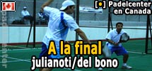 Mientras tanto, ya se enfrentaban en la pista dos en la primera de las semis del Open masculino, los argentinos Rodrigo Ovide y Fernando Cavalleri ante los brasileños Julio Julianoti y Gervasio Del Bono (argentino nacionalizado), con un trámite muy parejo en el primer set y un Ovide decidido a quemar todo lo que la pasara cerca, pero aún sin tanta solvencia y regularidad como en el partido de cuartos, Del Bono/Julianoti consiguieron el primer set luchando cada punto y tratando de evitar la potencia de Ovide. El segundo comenzó favorable para los argentinos, quienes lograron sacar ventaja temprana para ponerse 2-0 y la mantuvieron hasta el 4-3 40-15, momento clave donde aparecieron los fantasmas y llegó la recuperación de los brasileños. El 4-4 fue la vitamina que Gervasio y Julio necesitaban para retomar el control del partido, y levantando claramente la apuesta para tirar puntos ganadores, lograron cerrar la semi por 6/4 y colocarse en la final, con un Del Bono que no cabía en sí mismo de satisfacción.