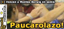 El tiempo da revancha, y como ya dijimos, la seguidilla de lesiones de Carol y Pau no pudo hacer mella en el espíritu de estas dos talentosísimas luchadoras, que llegaron a Murcia con un historial nada alentador en sus enfrentamientos contra Montes/Berwig, y luego de sacar en semis a las número uno del mundo, hoy se prueban la ropa de Campeonas Mundiales 2006, derrotando con autoridad y en tres sets a Catalina Tenorio y Valeria Pavon.