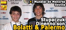 (Buenos Aires, 18 de octubre de 2009. De la Redacción de Padelcenter.com) Cuando Martin Dinenno (Ezeiza, Buenos Aires)y Franco Stupaczuk (Castelli, Chaco) regresen a sus ciudades natales en la Argentina, podrán contar una película que sin duda los tiene como héroes y protagonistas, luego de transformarse el sábado en la única pareja argentina en lograr un título en el Open por parejas Sub 14 masculino. Como Martin Palermo contra Perú y Mario Bolatti contra Uruguay en las eliminatorias para el Mundial de Fútbol, así pueden sentirse los chicos argentinos bailando de alegría en un festejo que aunque fue una isla entre triunfos españoles, se comparte con toda la delegación como propio.