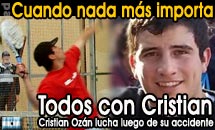 (Buenos Aires, 16/9/2011, Redacción de Padelcenter.com) Hay que tener un Dios aparte para contar la historia como la cuenta Cristian Ozán, pocos días después de su grave accidente del que tardó unos días en despertar. Una película que fue pesadilla pero ahora es casi un sueño del que el top ten argentino todavía no termina de caer. Ya en su casa y disfrutando su renacimiento, Cris termina de tranquilizarnos a todos: "Ya estoy bien, en casa recuperándome, hoy empecé la rehabilitación y ya me dijeron que dentro de dos semanitas ya voy a poder agarrar la paleta así que más contento todavía".
