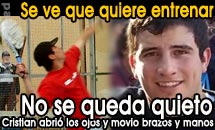 Las novedades del martes 6 por la tarde, transmitidas como siempre por su compañero y amigo Maxi Cejas, son más que alentadoras: "Cris se encuentra mucho mejor, hoy ya le sacaron la medicacion, el respirador y el aparato que le medía la gravedad del golpe en su cabeza (presión craneana). Cris llegó a tener un tope de 19 en esa medición y ahora se encuentra entre 7 y 8, así que la gravedad del golpe bajó muy favorablemente, lo que nos pone a todos muy contentos. Cris ya no para de moverse, mueve las piernas, los brazos, abre los ojos, ahora solo hay que esperar". Ya entrada la noche, su novia Aldy Ruiz compartía más novedades alentadoras con Padelcenter.com: "Les cuento que esta tarde sus padres entraron a verlo, despertó y los reconoció, se emocionó y ellos lo tranquilizaron. Gracias a Dios todo está saliendo bien. También cuando se iban Cristian intentó decirles algo".