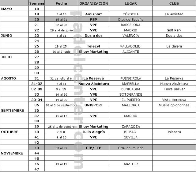 Calendario 2006 Circuito Padel Pro Tour Padelcenter.com