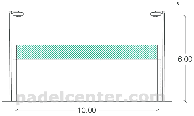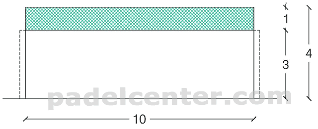 Fondos: Con 4 metros de altura total del cerramiento, compuesto por tres primeros metros de pared o muro y un último metro de malla metálica.