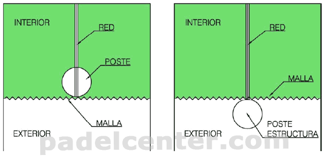 REGLA 20. (TRANSITORIA) En algunas pistas, entre los postes que sujetan la red y la red metálica queda un espacio. Si la pelota pasara por dicho espacio, sólo será considerada buena si a juicio del Arbitro ha pasado a una altura superior a la de la red.