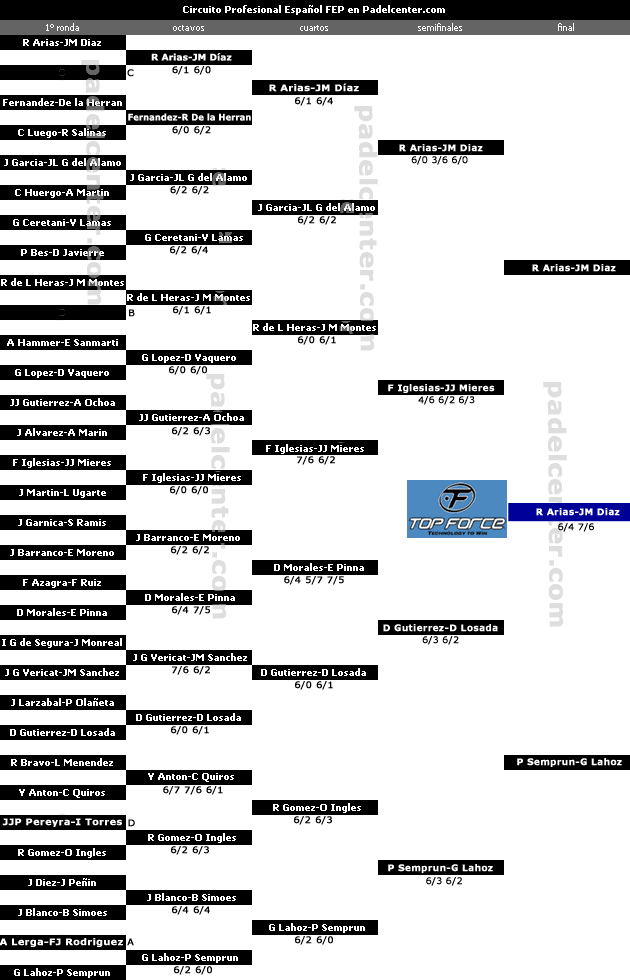 www.padelcenter.comR Arias JM Diaz Fernandez De la Herran C Luego R Salinas J Garcia JL G del Alamo C Huergo A Martin G Ceretani V Lamas P Bes D Javierre R de L Heras J M Montes A Hammer E Sanmarti G Lopez D Vaquero JJ Gutierrez A Ochoa J Alvarez A Marin F Iglesias JJ Mieres J Martin L Ugarte J Garnica S Ramis J Barranco E Moreno F Azagra F Ruiz D Morales E Pinna I G de Segura J Monreal J G Vericat JM Sanchez J Larzabal P Olañeta D Gutierrez D Losada R Bravo L MenendezY Anton C Quiros R Gomez O Ingles J Diez J Peñin J Blanco B Simoes G Lahoz P Semprun