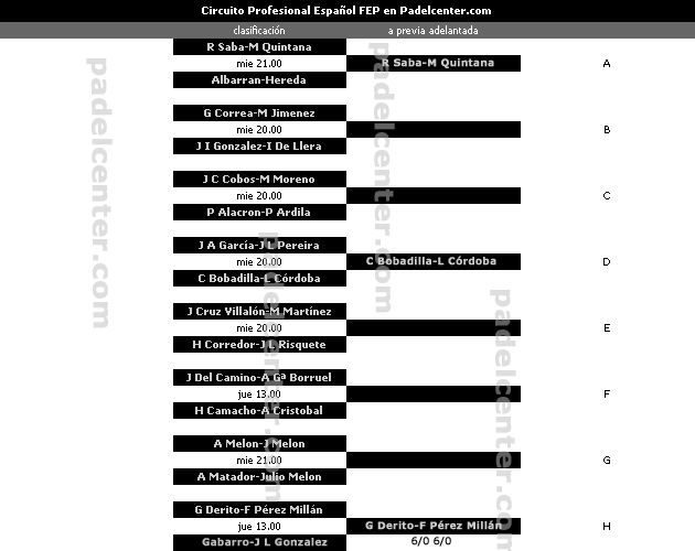 www.padelcenter.comR Saba M Quintana Albarran Hereda G Correa M Jimenez J I Gonzalez I De Llera J C Cobos M Moreno P Alacron P Ardila J A García J L Pereira C Bobadilla L Córdoba J Cruz Villalón M Martínez H Corredor J L Risquete J Del Camino A Gª Borruel H Camacho A Cristobal A Melon J Melon A Matador Julio Melon G Derito F Pérez Millán Gabarro J L Gonzalez
