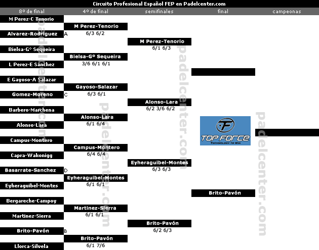 Gran torneo de Brito-Pavon, a quienes en España catalogan como "la revelación", aunque en la Argentina ya son una pareja consagrada y top ten. Sacaron en primera ronda a Llorca-Silvela y avanzaron sin problemas luego a semifinales, donde le quitaron el invicto a Montes-Eyheraguibel.