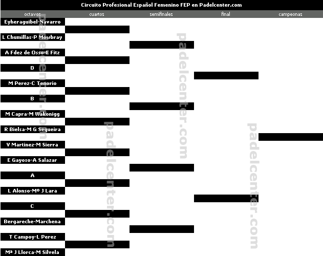 www.padelcenter.comEyheraguibel Navarro L Chumillas P Mowbray A Fdez de Osso E Fitz M Perez C Tenorio M Capra M Wakonigg R Bielsa M G Sequeira V Martinez M Sierra E Gayoso A Salazar L Alonso Mº J Lara Bergareche Marchena T Campoy L Perez Mª J Llorca M Silvela