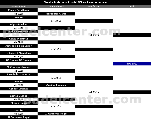 www.padelcenter.comFlores Del Alamo Algar Sanchez Cabrera Mateos Cañas Martínez Almonacid Torrecillas B López J Monedero Gª Espona Gª Espona Gª Courtoy Nicoletti Fernández Lorenzo Aguilar Limones Gómez Laguna Mieres Parra JJ Gutierrez Poggi