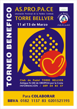 Aspropace, donde el Club de Padel Torrebellver, organizó un campeonato amateur, con 3 categorías masculinas y una femenina, durante 1 semana, cuyos ingresos íntegros fueron destinados a dicha asociación.