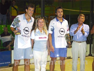 La actual pareja campeona del mundo también confirmó su presencia y su espectacular juego con el que derrotaron a Demianiuk- Sánchez por un contundente 6/0, 6/3. Sin duda, el partido del día lo protagonizaron Marcelo Jardim y Willy Lahoz que jugaron un inquietante partido contra Mongelo- Padovani. Un primer set "normalito" 6/3 a favor de Jardim- Lahoz, despertó la garra de Leo Padovani y su compañero quienes se impusieron en el segundo por un 4/6. Los juegos de este segundo set se lucharon hasta al final, mucho puntos largos que en más de una ocasión arrancaron los aplausos del público asistentes. El tercer set fue visto y no visto, Jardim y Wiily se impusieron por un 6/1, las dejadas de Marcelo y los remates de Wiily dieron vencedores a esta pareja..