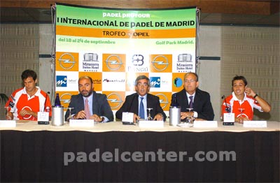 (Madrid, España. 21/9/2006, María Moreno Portillo, Opel Padel Tour para Padelcenter.com) El Padel Pro Tour celebra la llegada del otoño con la presentación de la décimo segunda prueba de su circuito profesional, el I Internacional de Pádel Madrid Trofeo Opel que se juega del 18 al 24 de septiembre en las instalaciones del Golf Park La Moraleja. Ha sido a las 12 del mediodía de hoy, 21 de septiembre, en el madrileño Mirasierra Suites Hotel.
