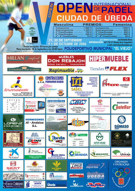 (Ubeda, España y Redacción de Padelcenter.com) Entre el 29 de septiembre y el 1º de octubre de 2006 se disputará una nueva edición del ya tradicional Open Internacional Ciudad de Úbeda, en sus variantes masculino y femenino.