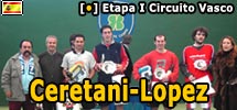 (Euskadi, España. 3/4/2007. Federación Vasca de Padel para Padelcenter.com) El tradicional Circuito Vasco disputó al comenzar abril su primera etapa correspondiente al Calendario 2007, en la primera prueba puntable que tuvo como campeones de la competencia masculina a los argentinos rosarinos Ceretani/López y como campeonas a Cayetana Galaz y Patricia Rivas.