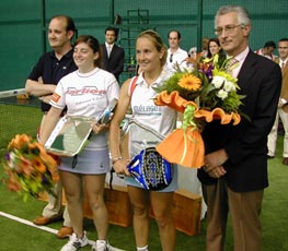Oropesa, 4 de abril de 2004.- Un año más, las mejores jugadoras del mundo han comenzado el año deportivo en el Club de Pádel Torre Bellver, club que durante el presente año albergará 5 pruebas de carácter profesional. Durante el primer fin de semana de abril se ha celebrado en las instalaciones de este club la primera prueba profesional femenina, con un total de 12 parejas inscriptas que se han desplazado desde distintos puntos de España. Llamó la atención la ausencia de algunas grandes animadoras, como la pareja Lara-Alonso, o María Wakonigg y la argentina Adriana Costagliola.
